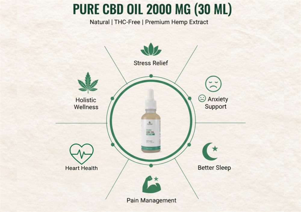 ✨ Key Benefits of Pure CBD Oil 2000MG: