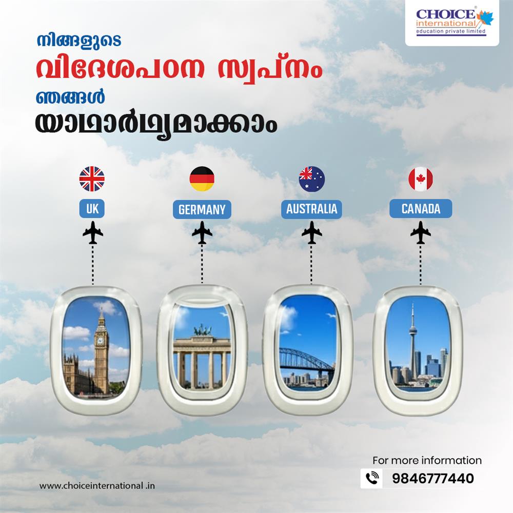 Choice International is one of the best study abroad consultants in Kochi, Kerala, offering trusted overseas education guidance backed by 17+ years of experience. We provide personalized study abroad counselling, university admissions support, student visa assistance, and pre-departure services for top destinations including the UK, Canada, Australia, Germany, and New Zealand.