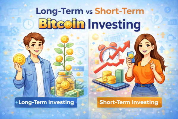 Long-term Bitcoin investing focuses on holding Bitcoin through market cycles, while short-term investing involves frequent buying and selling based on price movements. Beginners usually benefit more from long-term strategies that reduce stress and timing risks.