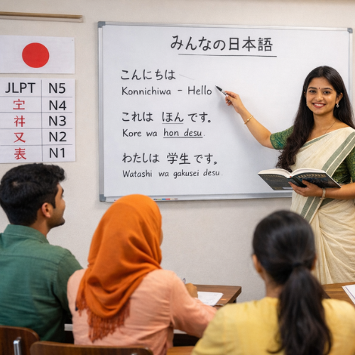 As a trusted Japanese language institute in North Kerala, our training focuses on grammar, vocabulary, reading, listening, and real-life conversation practice. Students preparing for JLPT exams or Japan work visa (SSW) requirements receive regular mock tests, previous question papers, and exam-focused strategies to ensure success. Our JLPT coaching in Kannur and Kasaragod is delivered by certified trainers with personalized guidance and progress tracking.